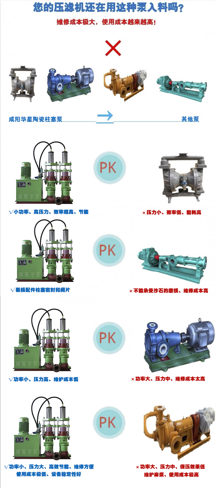 壓濾機(jī)入料泵公司。咸陽華星泵業(yè)有限公司28年專注研發(fā)生產(chǎn)壓濾機(jī)入料泵。型號(hào)分為普通型,變量型,耐酸型,變量耐酸型,高壓型,節(jié)能型。產(chǎn)品具體有YBH壓濾機(jī)專用節(jié)能泵,ZN智能變頻泵,YB液壓陶瓷柱塞泥漿泵,YBB壓濾機(jī)專用泵,YB高壓陶瓷柱塞泥漿泵,YB變頻陶瓷柱塞泥漿泵,YB不銹鋼耐腐陶瓷柱塞,YB鈦合金耐腐陶瓷柱塞泥漿泵,污泥輸送泵等等系列。